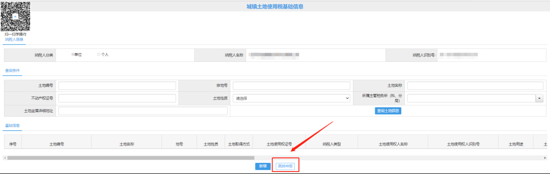 答:请您点击【我要办税】—【税费申报及缴纳】—【按期应申报】—【财产和行为税合并申报】,选择税源采集,点击城镇土地使用税右边的【税源采集】,点击维护明细信息,确认信息无误,点击跳转申报,在界面上方选择税款所属期,勾选城镇土地使用税,点击申报。