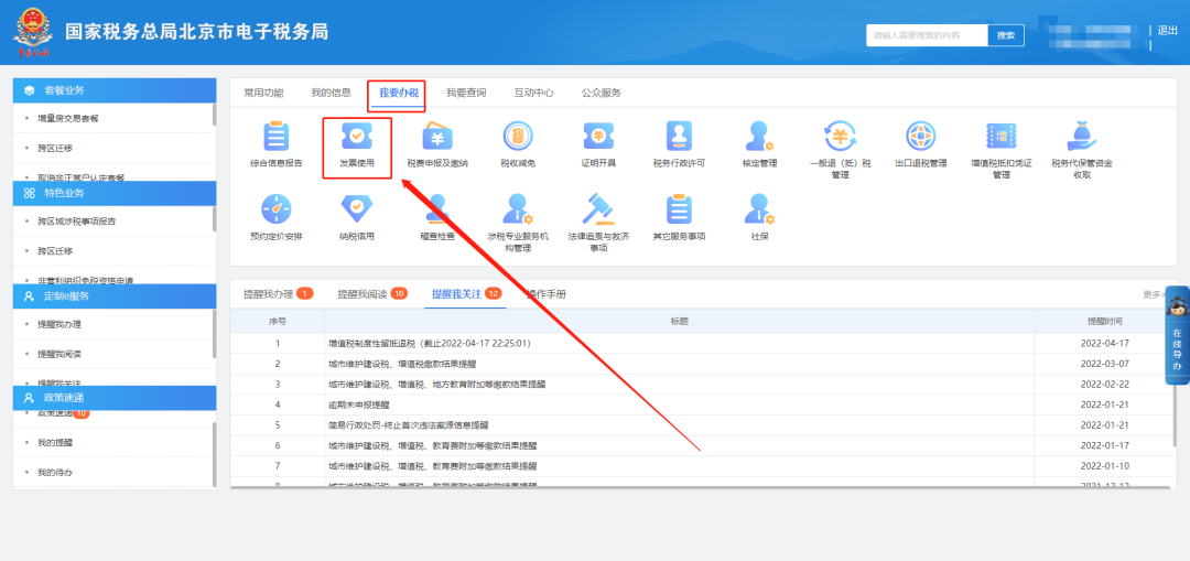 一、我要办税—发票使用。