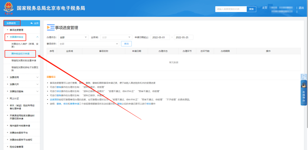 二、发票使用—发票票种核定—票种核定初次申请。