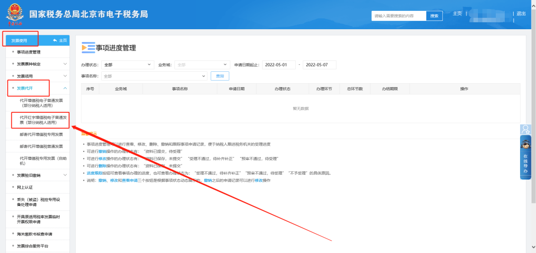 二、发票使用—发票代开—代开红字增值税电子普通发票,进行冲红。