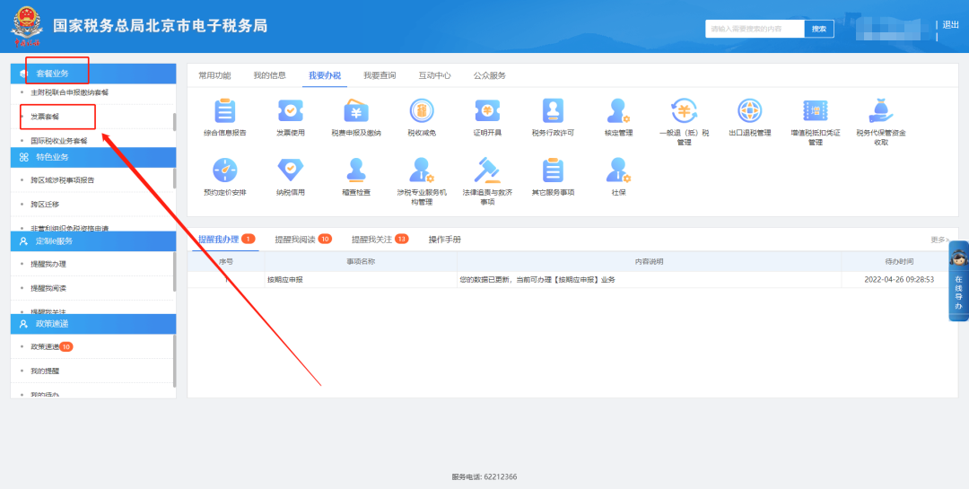 一、套餐业务—发票套餐。
