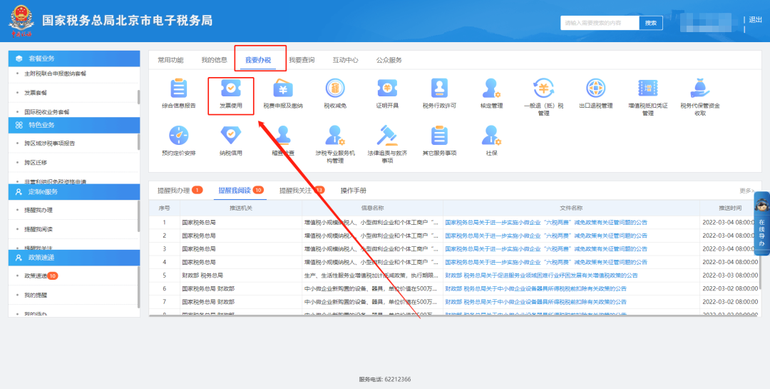 三、我要办税—发票使用。