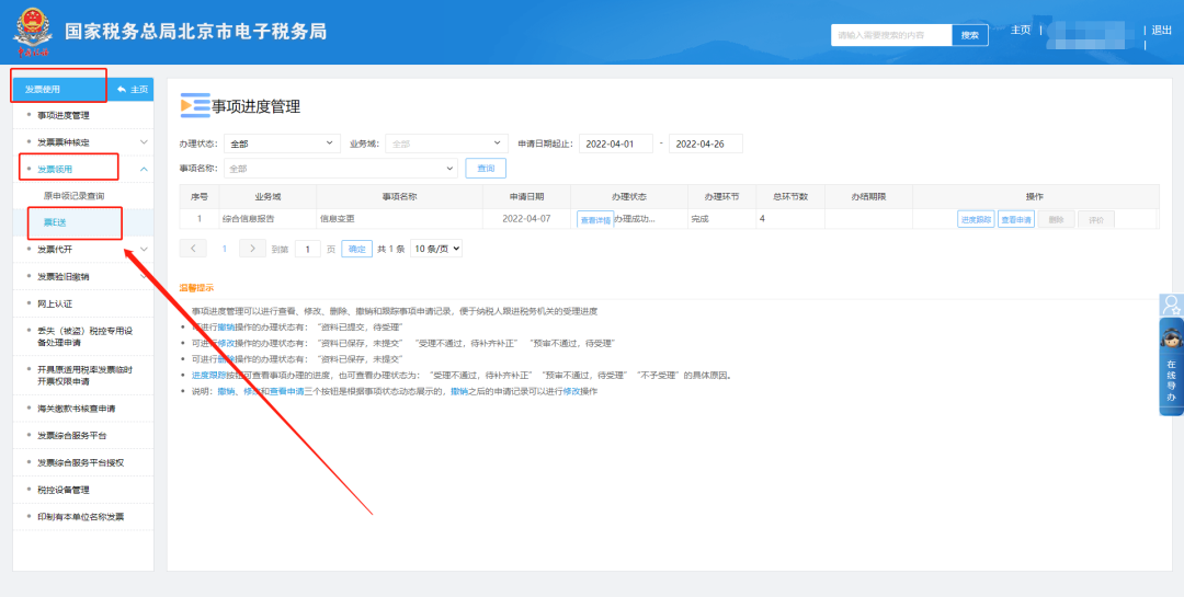四、发票使用—发票领用—票e送。