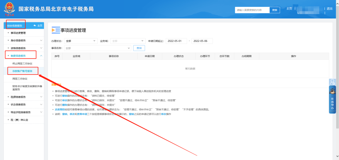 二、综合信息报告—制度信息报告—存款账户账号报告。