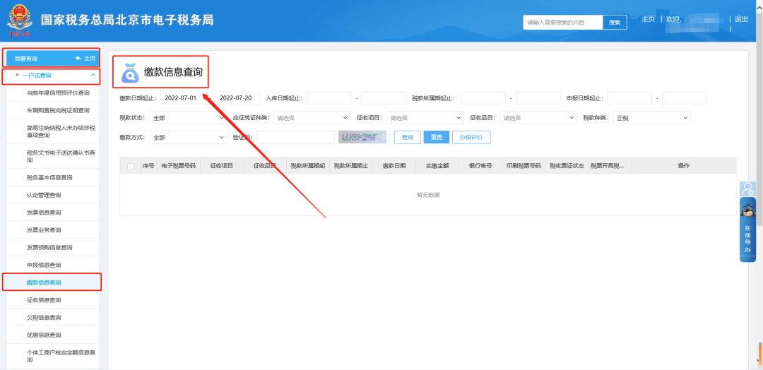 一、我要查询—缴款信息查询。