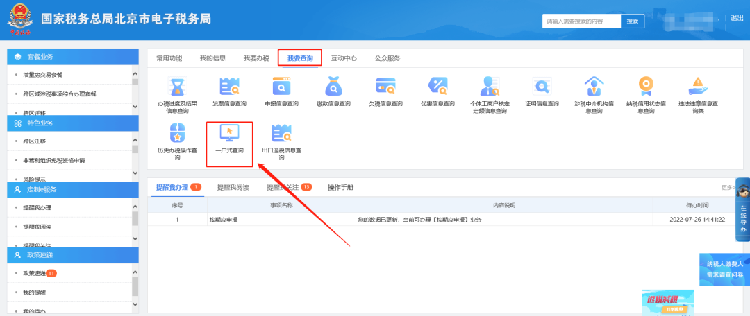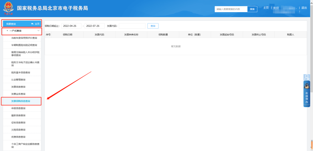 二、我要查询—一户式查询—发票领购信息查询页面。