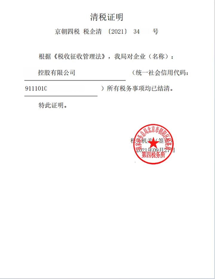 受客户委托,把他们的一家不经营的控股公司注销,21年接受委托,先完成了税务局注销,拿到了税务的清税证明。