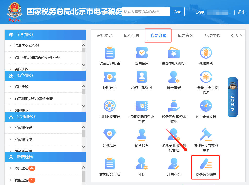 二、税务数字账户—发票查询统计。 三、全量发票查询。 四、全量发票查询模块进入,选择查询条件后点击【查询】,系统会依据条件展示查询结果,在查询结果中选择需要导出的发票数据,点击“导出”即可。